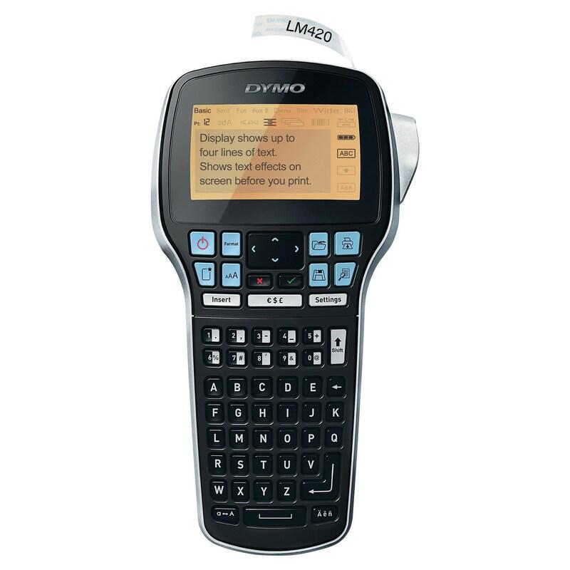 Pitkäkestoisella akulla varustetussa Dymo LabelManager 420P -tarrakirjoittimessa on suuri taustavalaistu näyttö ja abc-näppäimistö. Tekstiä on helppo muokata kätevillä pikanäppäimillä. Kirjoitin muistaa ja tulostaa viimeksi laaditun tarran, ja 15 usein käytettyä tarraa voidaan tallentaa muistiin. Laitteen voi myös liittää tietokoneeseen ja muokata tarroja Dymo Label -ohjelman avulla. Tarrakirjoitin käyttää 6, 9, 12 ja 19 mm Dymo D1 -kirjoitinteippejä.